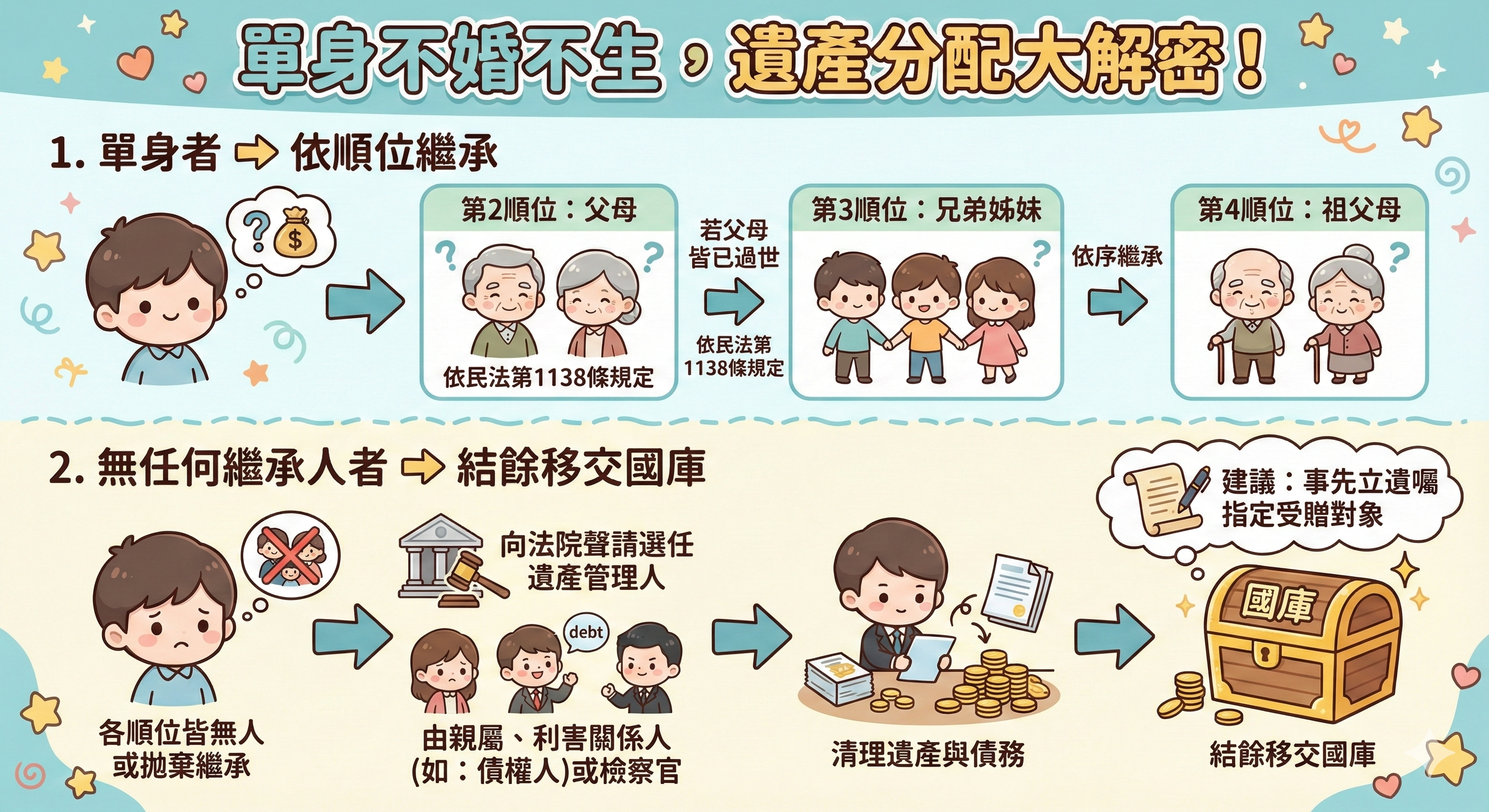 四、沒有子女怎麼辦?單身或無繼承人時的遺產分配順序
