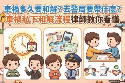 首頁 法律知識文章 案件類型: 不拘 刑事專區 民事案件 家事案件 車禍案件 勞資專區 債清專區 律師說故事 身份: 不拘原告被告 關鍵字: 搜尋 車禍案件 車禍、糾紛被求償?律師教你從和解到訴訟,精準計算損害賠償金額! 民眾們在生活中或多或少都會聽過侵權行為,損害賠償等名詞,然而大多數人對於他們怎麼使用來保護自己的權利卻是一知半解,以下我們會先介紹什麼是侵權行為?什麼是損害賠償?在生活中什麼情形可以主張侵權行為,請求損害賠償來捍衛自己的權利。 2025-12-24 原告 車禍案件 車禍被告過失傷害與過失致死如何自保?律師帶你看車禍刑事責任與交通過失傷害重點 發生車禍該怎麼辦?專業律師詳細解析交通過失傷害、車禍刑事責任與民事責任的認定標準、法律重點與實務案例,並一步步教你車禍被告過失傷害如何自保,全面維護自身權益。 2025-12-24 不拘 車禍案件 車禍求償項目有哪些?必知流程&文件,律師教你爭取合理賠償! 還在煩惱車禍該怎麼求償嗎?精神慰撫金怎麼樣計算才合理?有肇事責任,賠償金額就要砍半嗎?在提起民事訴訟求償前必看文章在這邊,一次帶你搞懂怎麼求償。 2025-12-24 原告 車禍案件 過失傷害罪最低刑責與定義懶人包:車禍判刑多久、罰金標準一次看 當車禍發生時,處理現場、釐清肇事責任外,如果造成人員受傷,雙方皆可能面臨「過失傷害罪」的法律問題。但過失傷害定義是什麼、最低刑責為何?通常車禍過失傷害又會被判多久?罰金怎麼算?就讓下面文章一次彙整,助你在面對過失傷害爭議時,能更從容地應對。 2025-12-24 被告 車禍案件 肇事逃逸無人受傷可以求償、提告嗎?罪責說明一次看懂 台灣汽機車密度極高,事故頻傳,肇事逃逸常成爭議。誤以為無人受傷即可直接離開?此舉雖未必涉刑責,仍有行政罰鍰與民事賠償責任!本文詳解肇事逃逸無人受傷的法律後果,從刑法行政法差異,到和解策略與求償流程一次說明,助您遭遇事故時正確應對,保障權益。 2025-12-24 不拘 車禍案件 車禍調解對方不來、沒和解會怎樣?過失傷害不和解與對方不處理的應對法 在車禍發生後,除了面對身體與財產的損害,後續繁複的理賠與協商程序,更讓人心力交瘁。若又遭遇車禍調解對方不來、不處理,或是過失傷害不和解的情況。下面文章將從專業角度為你解析,和解破局或對方消極處理時,應如何主動出擊及應對策略,保障自身權益。 2025-12-24 不拘 車禍案件 車禍多久要和解?去警局要帶什麼?車禍私下和解流程律師教你看懂 車禍發生後,大多數人會選擇和解,但車禍發生後多久要和解?去警局要帶什麼?和解金又該怎麼算嗎?有些人可能因為不了解私下和解流程與注意事項,反而讓自己在車禍事件處理中吃虧。本文就要來幫助你釐清車禍和解流程,讓你在意外發生時,能更從容面對與處理。 2025-12-24 不拘 車禍案件 車禍申請調解要多久?如何進行?車禍調解委員會流程與期限一次看 發生車禍後,除了私下和解,還有另一種解決方式為調解。但調解與和解差在哪?車禍申請調解要多久?要帶哪些資料?如果你也正為了車禍事故而煩惱,就讓下面文章一次帶你了解申請車禍調解委員會的流程,幫助你有條理地解決問題! 2025-12-24 不拘