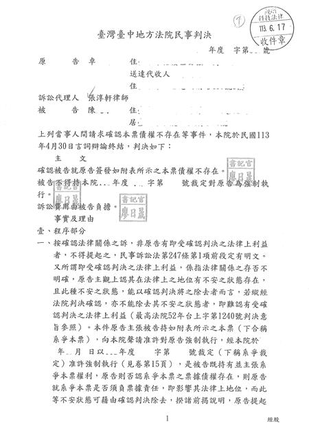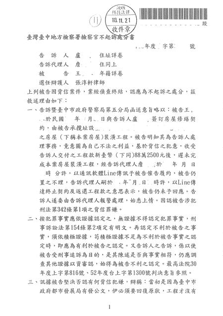 首頁 專業團隊 張淳軒 律師 成功案例 張淳軒 律師 擅長案件:詐欺、洗錢防制法、消費者債務清理程序、不動產案件、民事求償、強制執行程序 刑事案件 投資詐欺誤當車手 成功爭取緩刑4年 當事人因一時失慮,成為詐騙集團的車手,被檢察官提起公訴,幸好找到「法律停看聽」的張律師,在律師的幫助下,順利和告訴人協調溝通,當事人犯後也積極彌補造成的損害,終於和告訴人順利達成和解,最終律師也成功替當事人爭取到緩刑。 過失傷害成功達成和解 成功爭取不起訴 告訴人任職於當事人的工廠,工作過程中告訴人操作機器不慎而受傷,告訴人認為是當事人未盡管理義務才導致自己受傷,因而前往報警提告當事人。所幸當事人找到張律師,在律師的專業協助下,成功達成和解並讓告訴人撤告,讓檢察官同意給予當事人不起訴處分。 遭朋友利用錯當車手 爭取緩刑2年 當事人因朋友急需下,將提款卡提供給友人使用。爾後又在朋友的拜託下,將朋友匯款到當事人帳戶名下的款項領出。沒想到事後卻因為朋友非法使用提款卡,導致將當事人涉案被檢察官起訴。幸好在手足無措之際,找到「法律停看聽」的張律師,透過律師過往的辦案經驗和專業技巧,不斷的和受害者溝通協調,最終順利讓雙方達成共識和解,替當事人爭取到緩刑2年。 涉嫌虛擬貨幣洗錢案 成功爭取不起訴 當事人在網路上看到詐騙集團佯裝投資公司的貼文,在加入對方好友後,對方稱要提供帳戶讓公司操作而獲利。未料幾日後帳戶竟遭警示,當事人才驚覺自己遭詐騙集團利用。手足無措之下當事人找到「法律停看聽」的張律師,透過律師向檢察官證明當事人是誤信詐騙集團的話術,受到影響而陷入錯誤,成功替當事人爭取到不起訴。 偽造文書 成功爭取不起訴 當事人前往銀行提領其母親的遺產用以支付購入母親身故後靈骨塔之費用。孰料,其哥哥竟在事後提告當事人偽造文書。還好當事人找到「法律停看聽」的張律師,透過張律師的仔細蒐集證據、還原事實給檢察官知道,最終成功還當事人一個清白,替當事人爭取到不起訴。 詐欺案件 成功爭取不起訴 當事人和告訴人原先於網路交友軟體認識,某日當事人向告訴人借款1000元。詎料,當事人竟在日後突然收到警察局筆錄通知,指控當事人借款後便音訊全無,涉有詐欺的意圖。幸好當事人有找到「法律停看聽」的張律師,透過律師協助說服檢察官係當事人操作軟體不慎誤刪和告訴人的聊天室,並無詐欺的意圖,成功幫當事人爭取到不起訴,還給當事人一個清白。 槍砲彈藥刀械管制條例 成功爭取不起訴 當事人和同案被告遭警方搜索時查獲槍械及子彈,係因證人出庭時表示當事人曾碰觸過該槍枝,所以應該為當事人所有 當事人無奈之下找到張律師協助,透過張律師專業的答辯及提供當事人和同案被告間的對話紀錄,表示本案的槍枝應為同案被告所有,成功說服檢察官給予當事人不起訴的處分 背信 成功爭取不起訴 當事人承攬對方的房屋裝潢工程,但房屋係因遭主管機關認定為違建而需停工,過程中對方並不知情只認為當事人已收受款項卻不履約,便提告當事人背信罪,當事人便找到張律師協助,透過張律師專業的答辯及提供主管機管針對該房屋所核發的相關違建文件,成功說服檢察官給予當事人不起訴的處分 民事案件 損害賠償 成功爭取損害賠償 被告任職於當事人所開設的公司,被告係因行使職務時將原本應該繳納回公司的款項占為其所有,金額高達數百萬,因此當事人便找到張律師的協助,成功協助當事人追討回遭侵占的款項。 損害賠償 法院同意當事人提供擔保後,予以假扣押 當事人因為土地遭到數名被告傾倒廢棄物,造成土地無法正常使用,須支出高額清理費用始得清除。為確保當事人不會因訴訟時間過長,給予被告脫產時間。因此,張律師在受理案件後,馬上替當事人具名理由向法院聲請假扣押,成功保障當事人日後的求償權益。 確認本票債權不存在 成功爭取票權不存在 當事人係遭對方威脅才簽立本票,事後趕緊向熟悉民事糾紛的張律師求助,最後在律師協助下,證明本票的簽立是違反民法上的規定,成功替當事人爭取到票權不存在。 債務糾紛 被告應履行協議 當事人和被告為兄妹,被告答應當事人在期限內會將原先存放於帳戶的母親遺產應繼分得部分給付給當事人,事後被告卻推託遲未給付,無奈之下當事人找到「法律停看聽」的張律師,透過張律師的專業協助下,成功替當事人討回應得的應繼分部分。 分割共有物 成功替當事人將共有物分割並爭取到希望分配之部分 當事人和其他共有人共有數房屋,但遲未在分割方式上達成共識。為確保日後權利行使明確,所以找到張律師,替自己向其他共有人提出希望的不動產分割方案,最後也成功說服其他共有人,表示當事人提供的分割方法是最符合經濟價值、侵害最小下,同意依照當事人的方案進行分割及取得分割後不足價金之差額 分割遺產 成功替當事人將遺產分割並爭取到希望分配的部分 當事人和其他繼承人未在遺產分割方式上達成共識。為確保日後權利行使明確,所以找到張律師,替自己向其他繼承人提出希望的遺產分割方案,最後也成功說服其他繼承人,同意依照當事人的方案進行分割 請求返還房屋 成功請求被告搬離當事人的房屋 當事人和被告原為男女朋友同居在當事人所有的房屋,但分手後