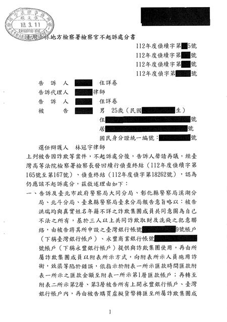 首頁 專業團隊 林冠宇律師 林冠宇 律師 律師證字號: 109臺檢證字第15744號 所屬事務所: 翊宇律師事務所 學歷: 國立成功大學法律學系 法學碩士(公法組)國立成功大學法律學系雙主修歷史學系 學士 經歷: 106年律師考試智慧財產組榜眼翊宇律師事務所 主持律師台北市政府 法律諮詢服務律師LINE TODAY-視在哈Law 合作律師一字千金 – 筆武大匯 參賽律師喆律法律事務所 律師中國國家統一法律職業資格考試 合格無形資產 評價管理師勞資事務師臺北市危老重建 推動師債權委外催收 專業人員防制洗錢與打擊資恐 專業人員SIIR計畫獲補助單位 計畫負責人中國人壽法令遵循部 暑期實習生北京岳成事務所 暑期實習生 擅長案件: 刑事犯罪、不動產、遺產、繼承 、消費糾紛 、車禍事故、債務糾紛、智慧財產、婚姻、監護、家事、企業商務 、網路新創 相關連結: 新聞訪問:「天下第一營」遭共諜滲透 4士官兵洩密遭起訴 新聞訪問:持有2259部兒少性影像 黃子佼遭重判8個月 新聞訪問:朱學恒酒後強吻鍾沛君 高院調解破局11月宣判 新聞訪問:犯後無悔意 NONO涉侵犯6女 士檢求重刑 新聞訪問:【TVBS】逛信義區遇搭訕男! 雞排妹轟「走開」FB公開照片控慣犯 新聞訪問:翁遭撞亡! 肇事主因「違騎人行道」家屬難接受 新聞訪問:違停買玉米害摔! 騎士3個月後亡「無關車禍」駕駛輕判 新聞訪問:被撞0肇責竟變全肇責 女控遊覽車肇逃 新聞訪問:殺小姑案再開庭 母女消瘦!網紅喊冤求交保 新聞訪問:鄭文燦涉貪獲500萬交保 桃檢跳腳當庭抗告 新聞訪問:停車繳費「罰款50倍」! 780變3萬9 新聞訪談:子拆3單討15包胡椒粉 父怒態度不佳.潑店員飲料 新聞訪談:義式冰頂讓違「互不侵犯協議」 57字代價20萬 新聞訪談:獨家》騎士穿「警用外套」趴趴走 警:舊款107年已更新 新聞訪談:賴老家信託捐公益 藍質疑「違建也行?」 新聞訪談:放下我孩子! 公園隨機抱童竟不罰 母氣炸 新聞訪談:控夫街頭攻擊 資深女星抱頭痛哭 引圍觀 新聞訪談:抓違停案外案!跟車行「借贓車」代步.毒犯遭逮 新聞訪談:名婚宴會館辦喜宴 網友控「阿伯」亂入竟吃霸王餐 新聞訪談:砸萬元入會 竟無合約 女控婚友社詐欺 新聞訪談:店員遇奧客拍桌.飆髒話 監視器”無聲”告不成!? 新北法扶合作企劃:《法律聊LAW去》債務催收大法!律師界的合法討債方法!林冠宇律師告訴你! 中國信託銀行合作企劃:「你理財理你」節目合作 第一銀行合作企劃:第一解憂電台-防詐篇 承辦案件比例 律師專欄 成功案例 刑事案件 投資而誤當車手 成功爭取不起訴 當事人因詐騙集團的話術而協助轉帳,被認為詐騙集團的車手,幸好找到「法律停看聽」的林律師,透過律師的專業答辯,成功向檢察官證明當事人是受騙才從事前開行為,成功替當事人爭取到不起訴。 點我看更多案例 刑事案件 因投資虛擬貨幣除遭詐欺而也誤當車手 成功爭取不起訴 當事人因投資虛擬貨幣中遭詐騙集團的話術而提供帳戶並協助轉帳,而被認為是詐騙集團的車手,情急下便找到「法律停看聽」的林律師,透過律師的專業答辯,成功向檢察官證明當事人是受騙才從事前開行為,成功替當事人爭取到不起訴。 點我看更多案例 刑事案件 解除告誡帳戶 成功協助當事人聲請解除告誡 當事人原先因涉犯洗錢防制法及詐欺等罪而讓帳戶遭到告誡的處分,當事人事後雖然取得不起訴的處分,但取得不起訴處分或者無罪判決,並「不代表當初提供帳戶給對方使用就是合理的」,行政法院會重新審酌提供帳戶的原因是什麼,加上行政法院一旦駁回您的聲請,日後就很難再上訴,就只能乖乖等五年才能解除告誡。當事人便找到「法律停看聽」的林律師,透過林律師協助撰寫書狀向原處分或上級機關申請依照職權撤銷告誡處分,成功協助當事人聲請解除告誡。 點我看更多案例 刑事案件 涉犯公共危險罪 成功爭取不起訴 當事人行駛當下並不知悉和對方發生擦撞,事後遭對方提告公共危險罪,當事人情急之下便找到「法律停看聽」的林律師,透過律師的專業答辯及透過傳喚目擊證人,成功說服檢察官替當事人爭取到不起訴。 點我看更多案例 文章發表 【莫名收到詐欺傳票】是被告還是證人?3步驟辨別真假與偵查庭自保全攻略 面對司法文書,最怕的是真假難辨:誤把真傳票當詐騙不予理會,可能面臨拘提;誤信假傳票提供的電話,則可能落入陷阱。本文將為您提供一套完整的應對 SOP,指導您如何用 3 分鐘分辨傳票真假、釐清自己的法律身分,並掌握進入詐欺案偵查庭的正確心態。 2025-11-21 刑事案件 立即獲得免費諮詢 點擊取得線上諮詢